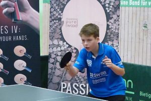 Spielerisch top – ergebnistechnisch bitter, so lautete das Motto von Pelz nach der Vorrunde der Jungen U18. Gleich dreimal musste sich der Bietigheimer im fünften Satz geschlagen geben. Lediglich gegen Tom Mykietyn (Nordrhein-Westfalen) konnte er einen Sieg (3:0) feiern. Einem 3:1 gegen Nikola Grujic (Saarland) im ersten Endrundenspiel folgte eine erneute unglückliche Niederlage in vier Sätzen gegen Benno Oehme (Sachsen). Zwei abschließende Siege gegen Nils Schulze (Niedersachsen) und Michael Schwarz (Saarland) brachten dem Bietigheimer den 17. Platz im Endklassement.