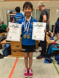 Bei den Mädchen U13 ging Geburtstagskind Helen Tian als Favoritin an den Start und bestätigte ihren Sonderstatus im Teilnehmerfeld mit einem ungefährdeten Turniersieg. Im gesamten Turnierverlauf musste Helen lediglich zwei Sätze abgeben. Auch im Doppelwettbewerb konnte Helen ihre Altersklasse mit ihrer Partne