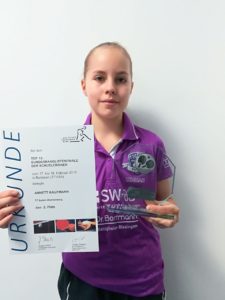 „Im letzten Jahr war ich Zehnte und dieses Jahr gleich Zweite. Ich bin mehr als zufrieden mit diesem Ergebnis“ zeigte sich Kaufmann stolz auf ihre Leistung. Dank diesem Ergebnis stehen die Chancen nun sehr gut für die 11-Jährige vom Deutschen Tischtennisbund für die diesjährige Europameisterschaft in Cluj Napoca (Rumänien) nominiert zu werden. „Das wäre ein absoluter Traum, der in Erfüllung gehen würde. Aber noch ist es nicht soweit. Jetzt geht es erste einmal mit der Nationalmannschaft nach Schweden“ blickt Kaufmann auf die kurz- und mittelfristige Zukunft voraus.