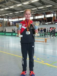 Ihre größten Erfolge ihrer bisherigen Karriere feierte Annett Kaufmann vom TTC Bietigheim-Bissingen am vergangenen Wochenende bei den Deutschen Einzelmeisterschaften der U15-Jahrgänge im niedersächsischen Dissen. Am Ende kehrte sie mit dem Deutschen Meistertitel im Mädchen U15 Doppel sowie dem Vizetitel im Einzel zurück. „Ich bin sehr glücklich mit dem Turnierverlauf. Das ist wirklich das i-Tüpfelchen auf die vergangenen Wochen“ freute sich die jungen Bietigheimerin über ihr Abschneiden.
