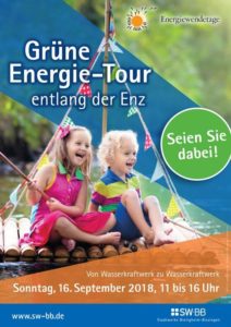 Am Sonntag, 16.09.2018 beteiligen sich die Stadtwerke am landesweit organisierten Energiewendetag. Umgesetzt wird dieser Aktionstag mit einer „Grünen Energie-Tour entlang der Enz“. An diesem Tag stehen alle vier Wasserkraftwerke (Sägmühle, Rommelmühle, Enzkraftwerk, Kammgarnspinnerei) entlang der Enz und das