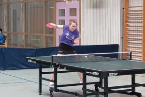 So begann die Begegnung wie erhofft mit 2 deutlich herausgespielten Doppelsiegen: Schneider/Leingang bezwangen Leyh/Hesser (3:1) und noch deutlicher Tian/Lamprecht Bräuner/Jekel (3:0) am Nebentisch.