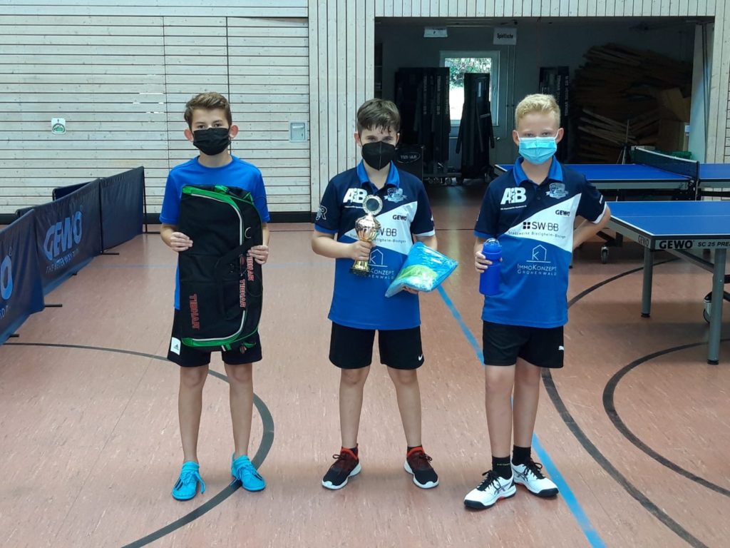 Dabei konnten sich die Doppel Tim Janßen / Alexander Selinski in der Gruppe „Mehr als 1000 TTR-Punkte“ und Leonidas Dambacher / Jakob Kummer in der Gruppe „Weniger als 1000 TTR-Punkte“ als erster Platz durchsetzen.
