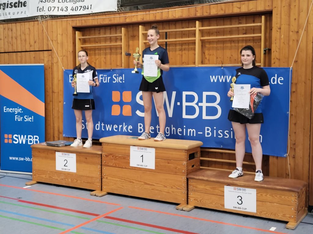 Den ersten Podestplatz für den TTC erkämpfte sich Jolina Leingang in der Mädchen 15-Konkurrenz. In einem lediglich drei Teilnehmerinnen umfassenden Feld erreichte sie durch einen deutlichen Sieg und eine extrem knappe Niederlage den zweiten Rang. Ähnlich ausgeglichen ging es in der Mädchen 18-Gruppe zu. Aufgrund des hauchdünnen Satzvorsprungs konnte Leingang in dieser Konkurrenz den Titel für sich beanspruchen, dicht gefolgt von Mannschaftskollegin Helen Tian.