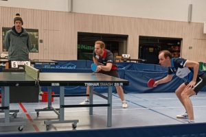 Punkteteilung danach im mittleren Paarkreuz beim fast schon untypischen Sieg in vier Sätzen Hingars über Plantikow. Löwinger musste parallel Gegner Kiesinger gratulieren.