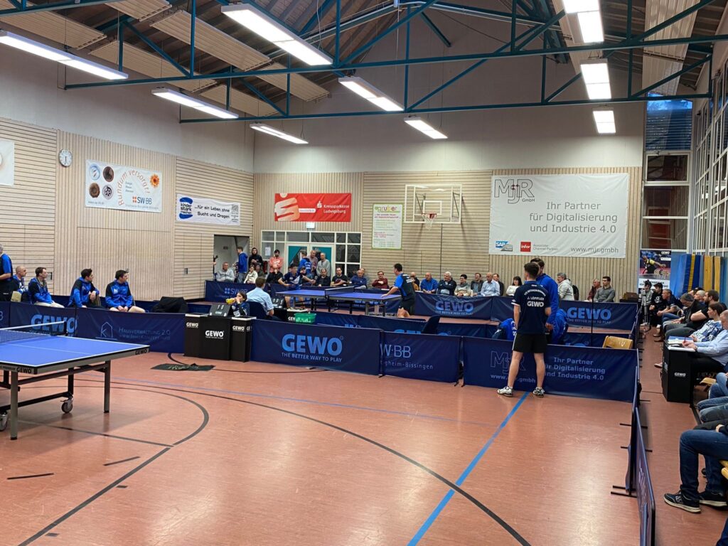 Selten gelang den Bietigheimern ein so überzeugender Start in eine Partie: Vor 75 anwesenden Zuschauern ließ das Spitzendoppel des TTC, bestehend aus Mike Hollo und Pekka Pelz, ihre Gegenüber Florian Bluhm und Vladimir Anca zu keinem Satzgewinn kommen. Als parallel dazu auch Jeromy Löffler und Iizuka in fünf Durchgängen gegen Julian Mohr und Josef Braun die Oberhand behielten, war die Überraschung geglückt. Dass es dennoch ein langer Weg zum Punktgewinn werden sollte, offenbarte sich in den darauffolgenden Einzeln: