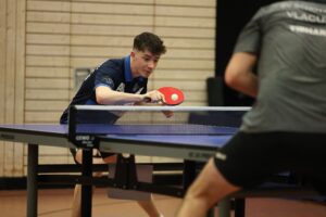 Sowohl die Wöschbacher, als auch die Bietigheimer hatten ihre Doppel taktisch aufgestellt und die jeweiligen Positionen drei und vier als Doppel eins eintragen lassen. So bekamen es Jeromy Löffler und Michael Engelhardt mit Rodrigo Hidalgo und Kenan Hrnic zu tun. Nach fünf spannenden Sätzen waren es die beiden Bietigheimer, die das glücklichere Ende fanden. Am Nebentisch hatten Mike Hollo und Pekka Pelz gegen Jan Zibrat und Aleksa Gacev wenig zu bestellen und unterlagen klar.