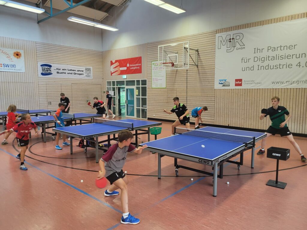 Eine Stunde lang standen Matej Haspel, Noah Hersel, Friedrich Kühn von Burgsdorff, Tom Wienke und Nico Thoennissen den TTC-Nachwuchstalenten als Sparringspartner zur Verfügung. Unter den Augen Von DTTB-Bundestrainer Richard Hoffmann und TTC-Chefcoach Andreas Kienle wurde jede Minute genossen. Überrascht zeigte sich Hoffmann über das Niveau der Kinder, die erst seit 12-18 Monaten aktiv im Vereinstraining sind. „Die können ja alle richtig gut spielen – das Niveau ist für diese kurze Zeit fantastisch“ zeigte sich Hoffmann begeistert.