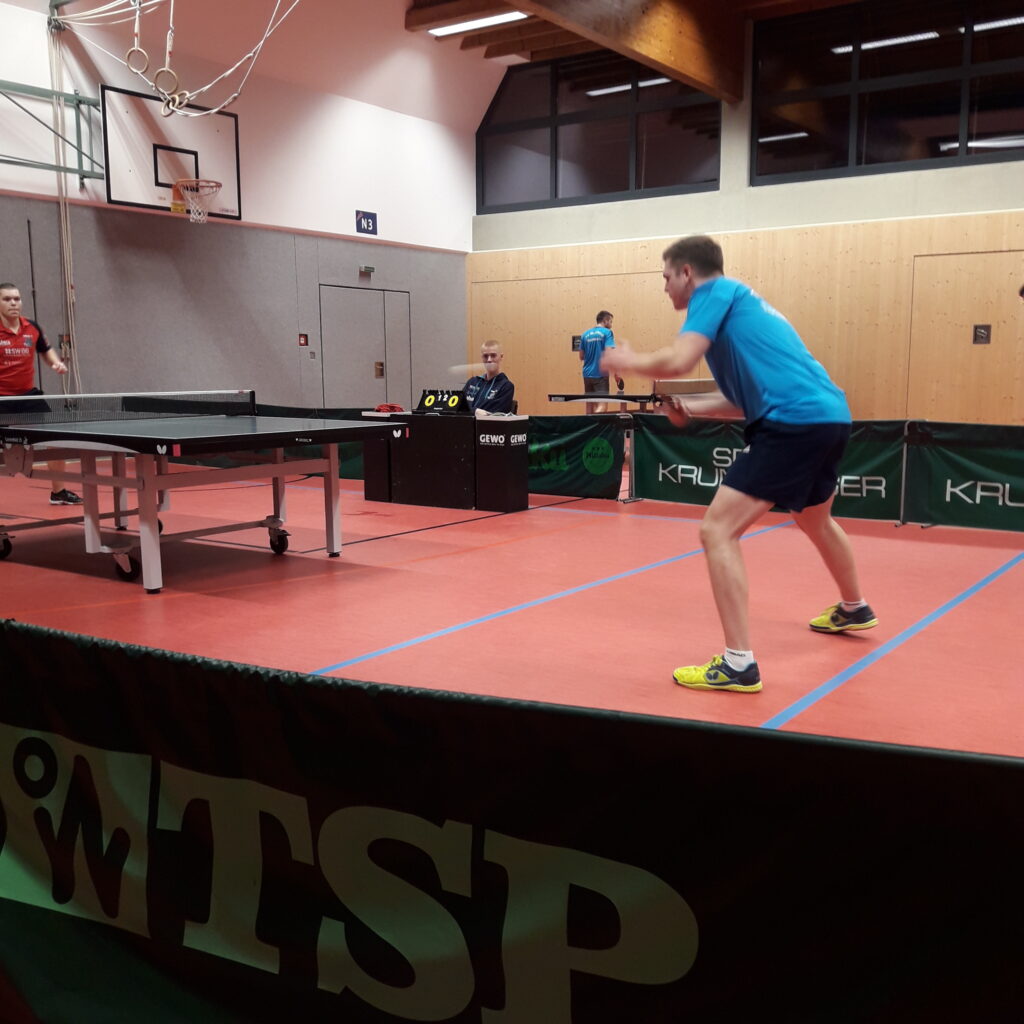 Mittleres Paarkreuz David mit zwei sauberen Siegen – man könnte schon fast von Routine als Mannschaftsältester sprechen, Lasse einmal nicht ganz auf der Höhe und im zweiten und Schlusseinzel nach 0:2 verdient als Sieger mit 3:2 vom Tisch – wie er das gemacht hat, wusste weder er noch seine beiden Kollegen aus dem hinteren Paarkreuz – da waren sie wieder. Chaichi und Tom.