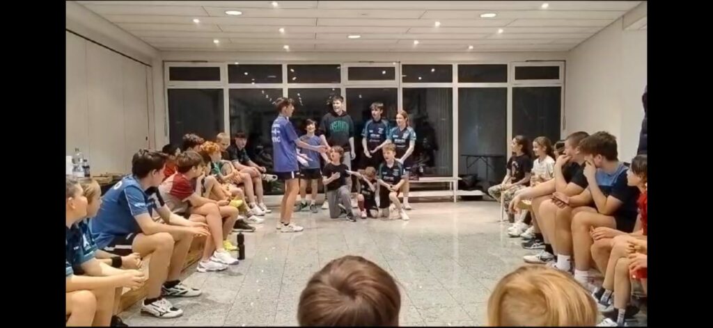 In sechs Teams traten die Teilnehmer in sechs sorgfältig ausgesuchten Spielen gegeneinander an, um den diesjährigen Weihnachtschampion zu krönen. Es wurde Tischtennis gespielt, Stühle erorbert bei der Reise nach Jerusalem, gebottleflippt, mächtig am Tau gezogen, auf Matten gerutscht und zum Schluß gesungen, ehe der Sieger feststand. Am Ende setzte sich das Team von Kapitän Mateo Taras (mit Jakob + Kaleb Kummer, Noah Bentz, Finn Boelke, Pia Bay, Paris Dulgeris und dem einarmigen Theo Müller) knapp vor dem Team Nils Lamprecht (mit Leonidas Dambacher, Henrik Buhl. Milo Kummer, Lina Dakhili, Sebastian Pawlak, Leandros Karapanagiotidis und Justus Engel) durch.