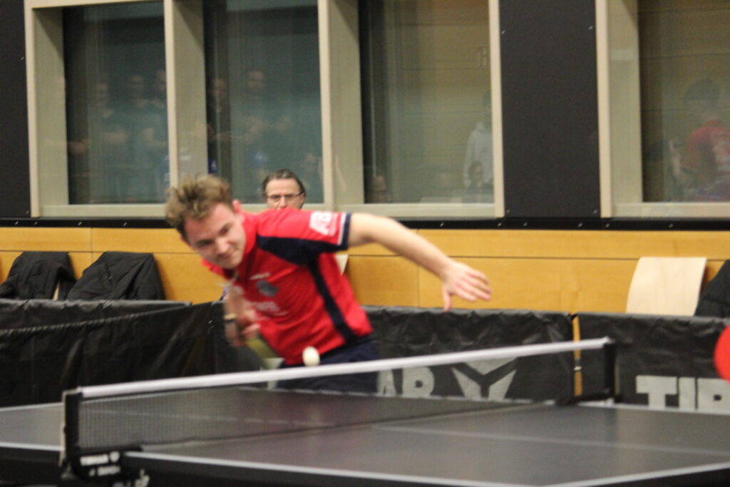 Chancen hatte man sich im Doppel ausgerechnet, doch weder Jeromy Löffler/Elias Hardmeier gegen Yuto Abe/Talha Yigenler, noch Alexander Valuch/Michael Engelhardt gegen Cedric Meissner/Mathias Hübgen vermochten, eine solche Chance zu nutzen. Zwar verliefen die Begegnungen in großen Teilen ausgeglichen, am Ende siegten jedoch die Gäste in je vier Durchgängen. Anschließend kämpfte sich Valuch gegen Abe im Rahmen eines sehenswerten Schlagabtausches in den Entscheidungssatz, in dem er leider unterlag. Parallel dazu versuchte Löffler, sein Vorrundenkunststück, einen Sieg gegen Meissner, zu wiederholen. Der Saarbrücker blieb dieses Mal jedoch ohne größere Patzer, während Löffler nicht durchgängig an sein persönliches Limit kam. So unterlag der junge Bietigheimer in drei Sätzen. Einen ersten Zähler fuhr anschließend Hardmeier ein, der in drei Verlängerungssätzen über Hübgen die Oberhand behielt. Am Nebentisch musste sich Engelhardt einem starken Yigenler beugen.