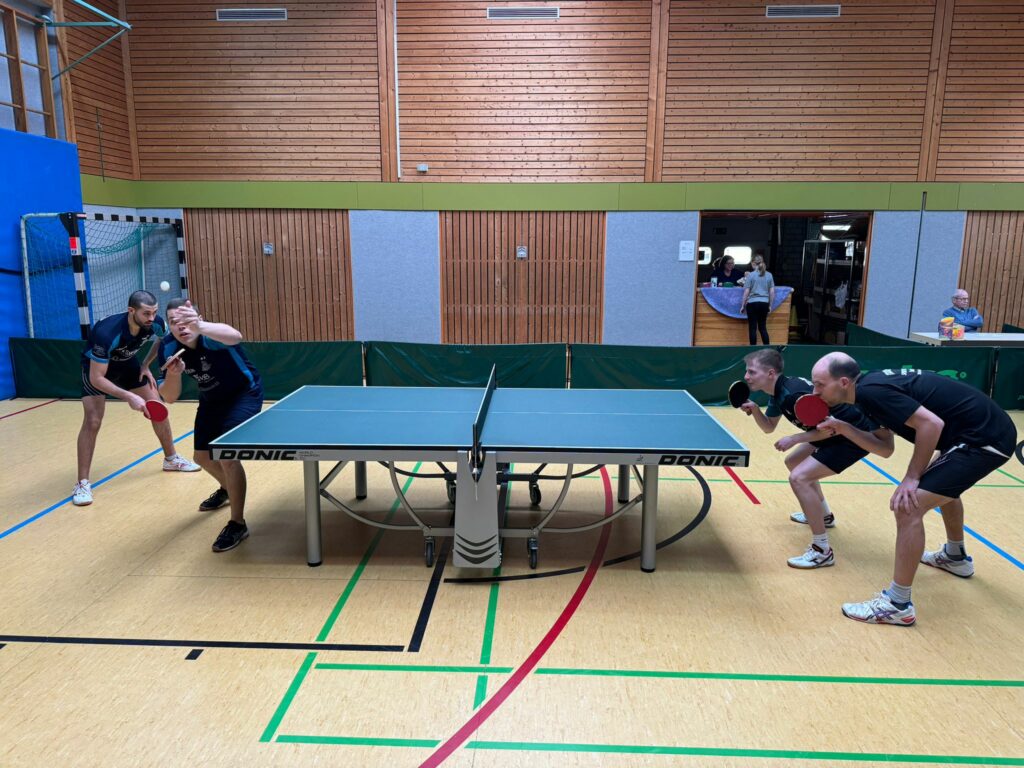 4) ein mittleres Paarkreuz mit Abdelbasset Chaichi und Jan Hartmann, beide auch in Tuttlingen mit soliden Siegen. Pedro Pelz hinterlies bei den letzten Partien seine Visitenkarte und war sicherlich mehr als ein Ergänzungsspieler.