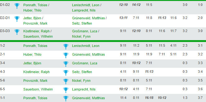 So ging in den ersten Einzeldurchgang. Es folgten im vorderen Paarkreuz zwei spannende Duelle. Grünenwald gegen Huber und Lenischmidt gegen Ponath. Jeweils in Satz 5 wurden beide belohnt und holten die ersten Zähler für den TTC zum 2:3. Es folgten danach weitere klare 3:0 Siege von Großmann gegen Jetter, Seitz gegen Köstlmeier, Lamprecht N gegen Sauerborn und Nickel gegen Provoznik. Als auch noch Grünenwald den Siegeszug fortsetzte gegen Ponath wurde aus dem 0:3 Start eine 7:3 Führung.