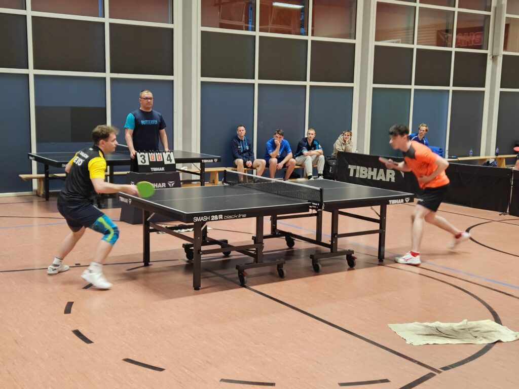 Gespielt wurde im Handicap-Modus. So wurde jede/r SpielerIn anhand ihrer Tischtennisrating-Punkte (TTR) eingestuft und hatte gegen besser eingestufte Gegner einen Vorsprung. „Das soll das Ganze etwas spannender machen, damit auch die Stars ein wenig gegen unterklassige Gegner kämpfen müssen“ erklärt Grünenwald die Idee dahinter. So entwickelte sich ein tolles und spielerisch hochklassiges Turnier. Am Ende standen die vier Topfavoriten im Halbfinale. Dort setzte sich Alexander Valuch in fünf Sätzen gegen Tom Colvin durch, während Jeromy Löffler in vier Sätzen gegen Pylyp Koloidenko siegreich bleib. Im wohl hochklassigsten Finale jemals konnte sich Löffler zunächst eine 2:0 Satzführung gegen seinen Teamkollegen Valuch erspielen. Doch im Lauf des dritten Satzes kippte das Spiel zu Gunsten des Spitzenspielers des Drittligateams und er konnte sich schlussendlich im Entscheidungssatz mit 11:5 durchsetzen.