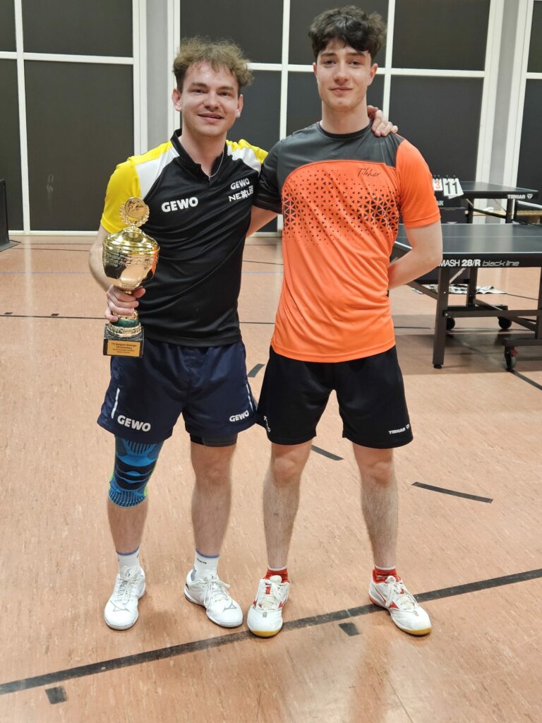 Auch im Doppel, in dem die SpielerInnen aufgrund ihrer Spielstärke zugelost wurden, konnte Valuch mit Doppelpartner Luca Marsilly das Finale erreichen. Ihnen gegenüber standen Marc Hingar aus der Herren IV des TTC und Katharina Schneider aus der TTC-Damenmannschaft. Nach zunächst verlorenem erstem Satz, siegten Valuch/Marsilly schließlich in vier Sätzen und krönten sich so zu den neuen Doppel-Vereinsmeistern.