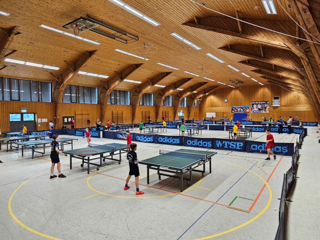 Nach der Trainingseinheit ging es dann für Milo Kummer, Henrik Buhl, Noah Bentz, Maya Rimpu und Zoe Simeonidis mit dem ersten Spiel gegen die Grundschule aus Dettingen los. Die Nervosität war entsprechend hoch, doch durch Siege von Kummer, Bentz und Rimpu bei einer Niederlage von Buhl gegen die Spitzenspielerin der Dettinger Tamara Göppel konnte eine schnelle 3:1 Führung erspielt werden. Kummer und Buhl siegten anschließend ebenfalls souverän im Doppel zum 4:1, ehe Rimpu mit ihrem zweiten Einzelsieg den 5:1 Gesamtsieg festzurrte.