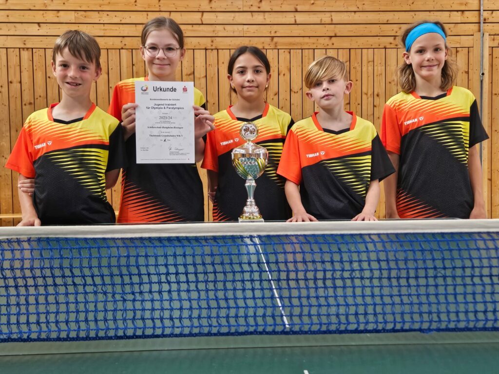 Die Schillerschule aus Bissingen hat das Landesfinale des Jugend trainiert für Olympia Wettbewerbs für Grundschulen im Tischtennis gewonnen. Bei der zweitägigen Veranstaltung an der Landessportschule Albstadt-Tailfingen blieb das Team in allen fünf Spielen ungeschlagen und sicherte sich verdientermaßen den Titel.