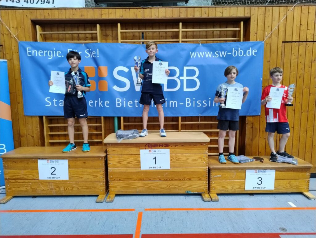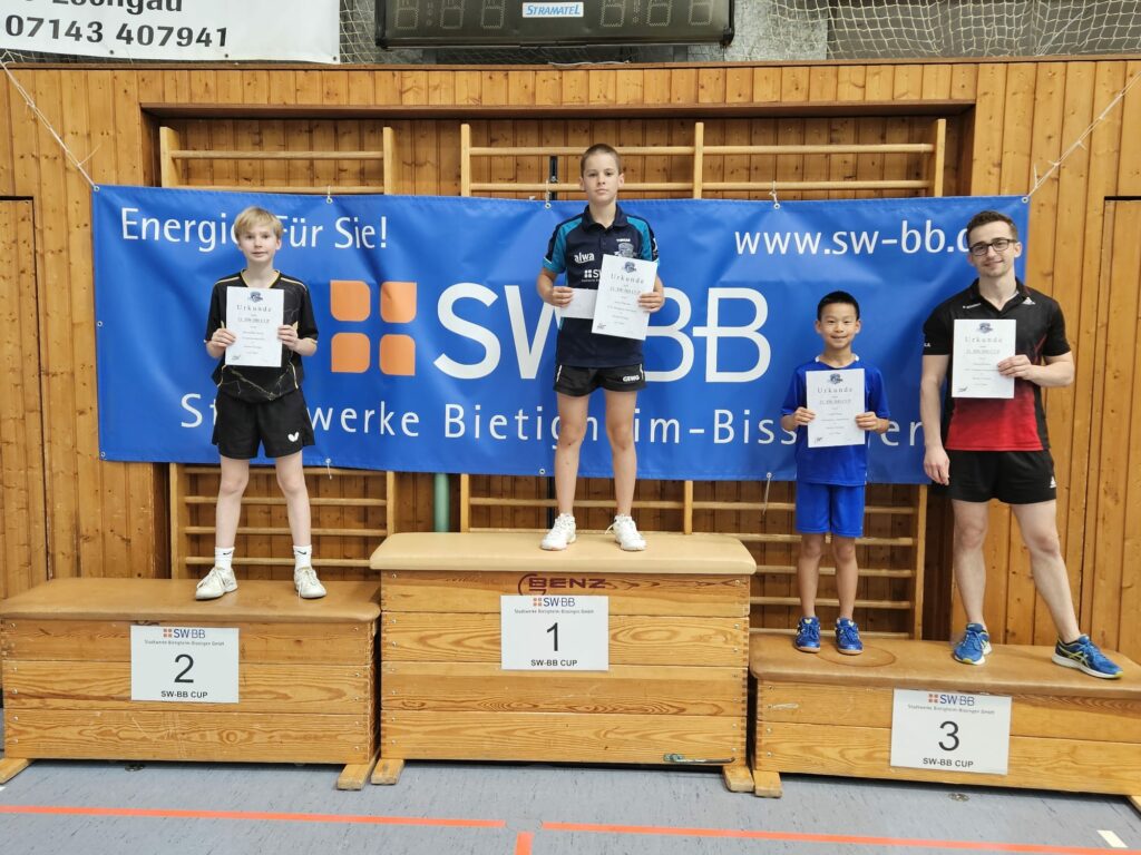Weitere TTC-Siege gab es im Jugendbereich. So gewann Milo Kummer bei den Jungen U12 im vereinsinternen Finale gegen Theo Müller seinen ersten Einzeltitel. Dabei bestachen beide TTC-Youngsters mit tollen Ballwechseln und viel Spielwitz. Bei den Jungen U14 konnte sich Areg Gaboyan aus der TTC-Jugend den Titel sichern. Im Finale gab es ein ungefährdetes 3:0 gegen Linus Vester vom TSV Schwieberdingen. Beinahe hätte es für Gaboyan auch noch für einen Doppelsieg gereicht. Jedoch musste sich der junge Bietigheimer im Finale der Jungen U13 in vier Sätzen Leo Mu von der Sportkultur Stuttgart geschlagen geben. Auch für Müller gab es nach dem zweiten Platz bei den Jungen U12 auch noch einen zweiten Platz bei den Jungen U11. Im Finale gab es eine Dreisatzniederlage gegen Moussa van der Smissen vom DJK Sportbund Stuttgart. Kummer belegte hier zudem noch den dritten Platz. Für weitere Podestplatzierungen sorgten Noah Bentz bei den Jungen U10, Lennart Hangstörfer bei den Jungen U14 und Angela Leibold bei den Mädchen U14, die allesamt auf dem Bronzeplatz ins Ziel kamen.